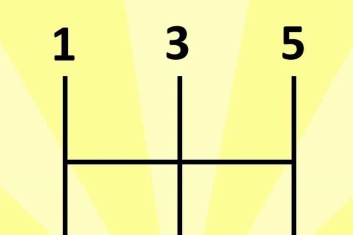 Observe a imagem abaixo com atenção. Você vê três colunas verticais conectadas por uma linha horizontal. No topo das colunas, temos os números 1, 3 e 5. Na base das duas primeiras colunas, vemos os números 2 e 4, mas a base da terceira coluna está marcada com um ponto de interrogação. O que está faltando na imagem?