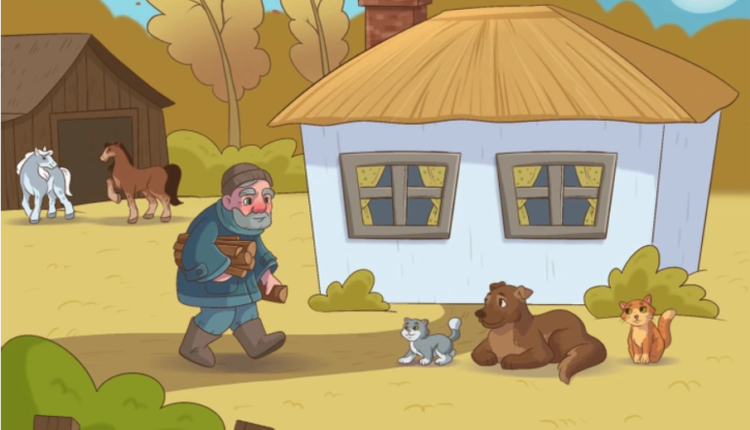 Ao que tudo indica, o senhor que é dono da propriedade está se preparando para enfrentar o frio que vem com lenhas debaixo dos braços. Mas há algo que não faz nenhum sentido nessa cena. Você consegue descobrir o que é? Olhe com atenção para todos os seus detalhes.