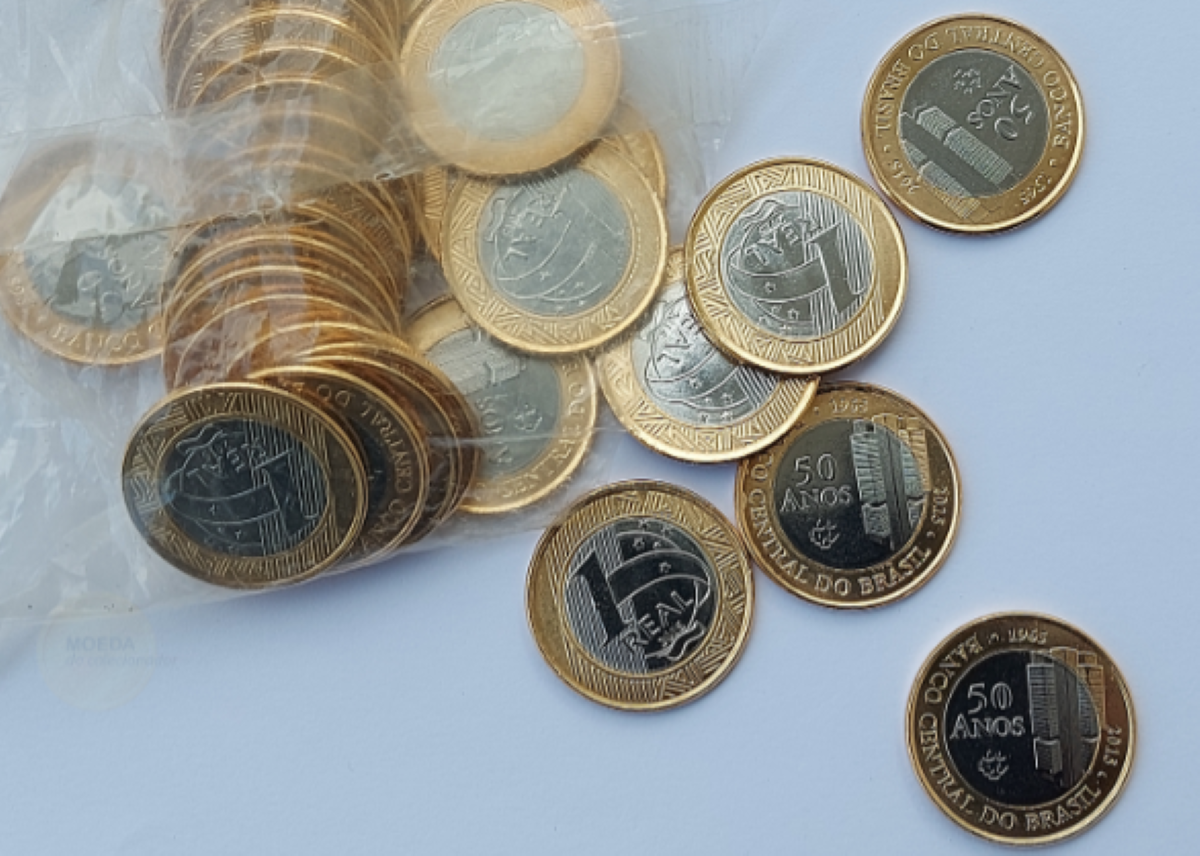 Em relação à moeda de 1 real comemorativa dos 50 anos do Banco Central, seu valor pode variar de alguns reais a ultrapassar a cifra de R$ 1.350,00, especialmente em casos de erros na cunhagem ou em meio a disputas em leilões.