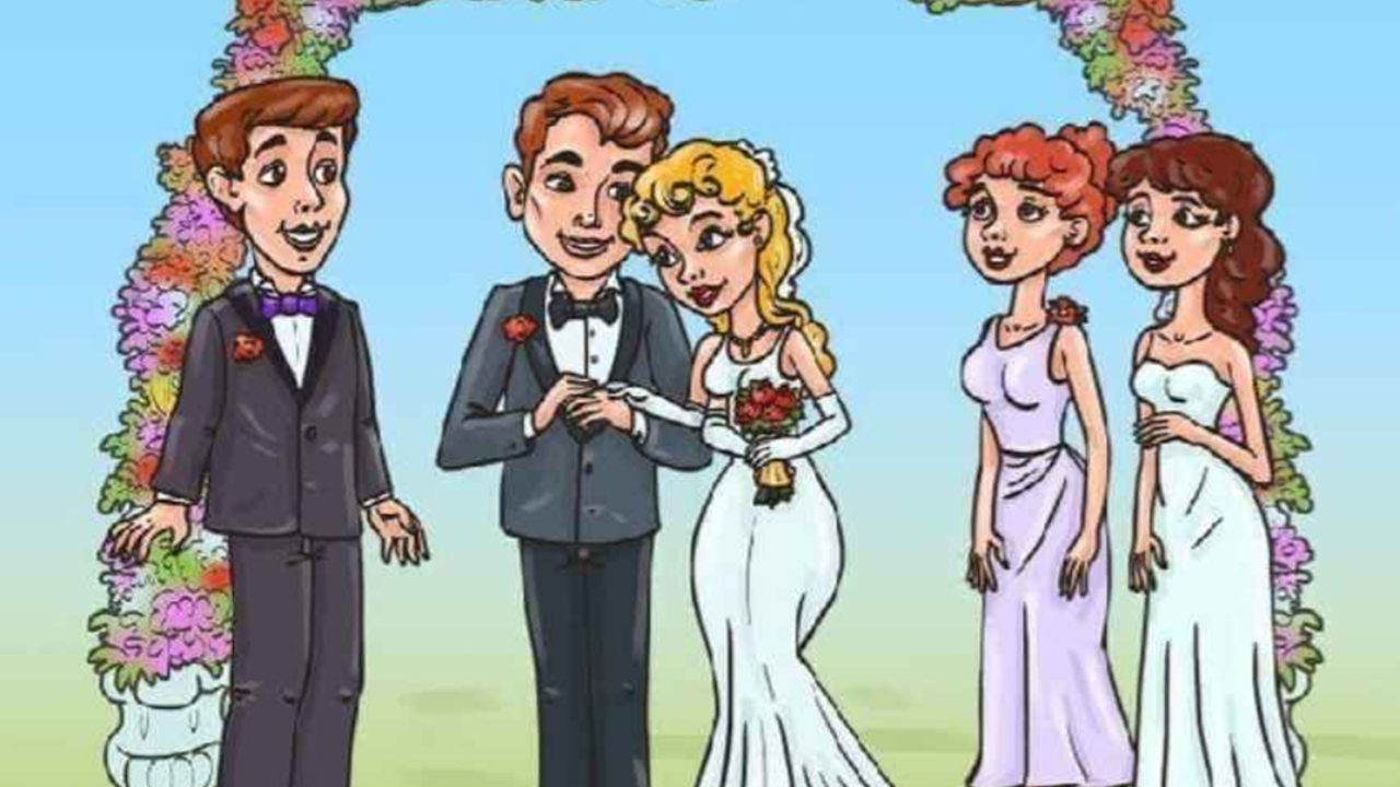 E agora, revelaremos a solução para o enigma! O alienígena estava escondido no casamento, disfarçado como a própria noiva. A chave para descobrir estava em notar um detalhe anormal e fora do comum na cena: ela possui um terceiro braço!