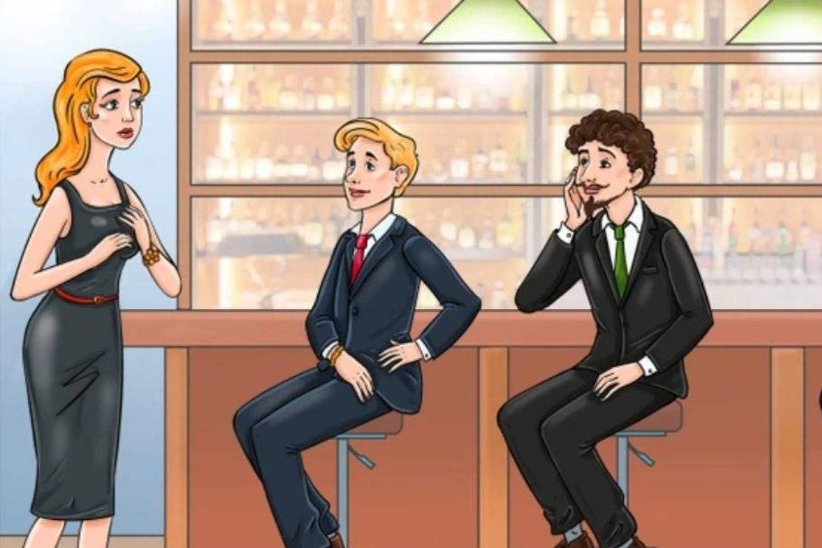 3. Repare na interação: Veja se há alguma interação não verbal entre a mulher e um dos homens, como um gesto ou expressão facial que sugira uma relação mais íntima.