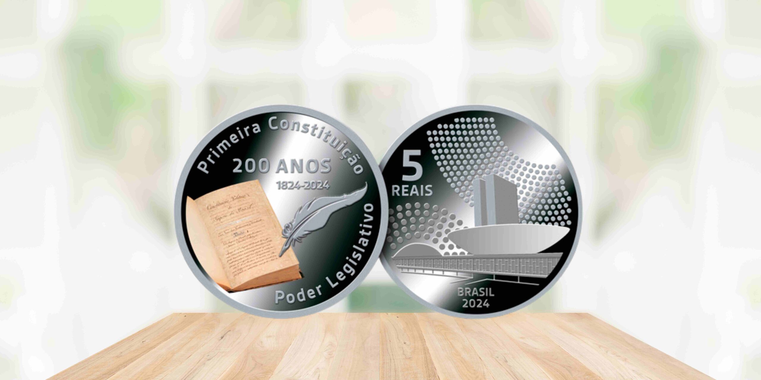 O Banco Central do Brasil apresentou uma moeda comemorativa de R$ 5 em celebração aos 200 anos da criação da primeira Constituição do Brasil, ocorrida em 1824.
