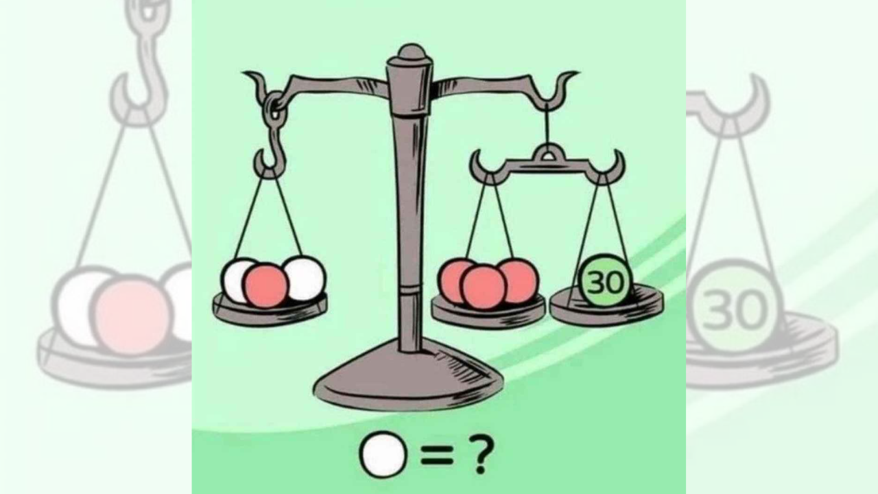 O quebra-cabeça apresenta uma balança com bolas coloridas, onde cada cor tem um valor específico. A bola verde, por exemplo, tem seu valor revelado, servindo de ponto de partida para desvendar o valor da bola branca.