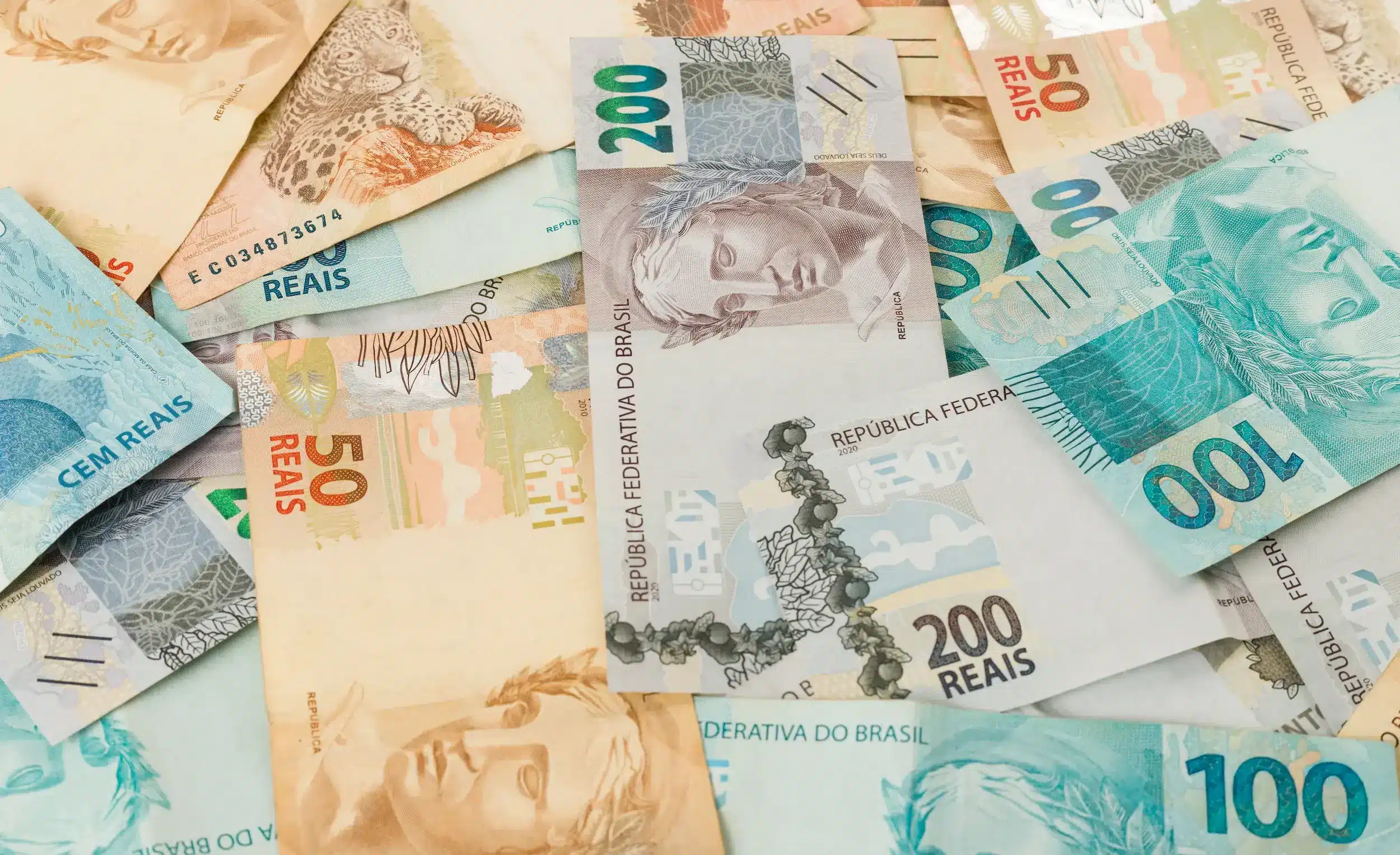 Notas de dinheiro do real, incluindo cédulas de R$ 50, R$ 100 e R$ 200, representando o valor que será distribuído no 13º salário do INSS.