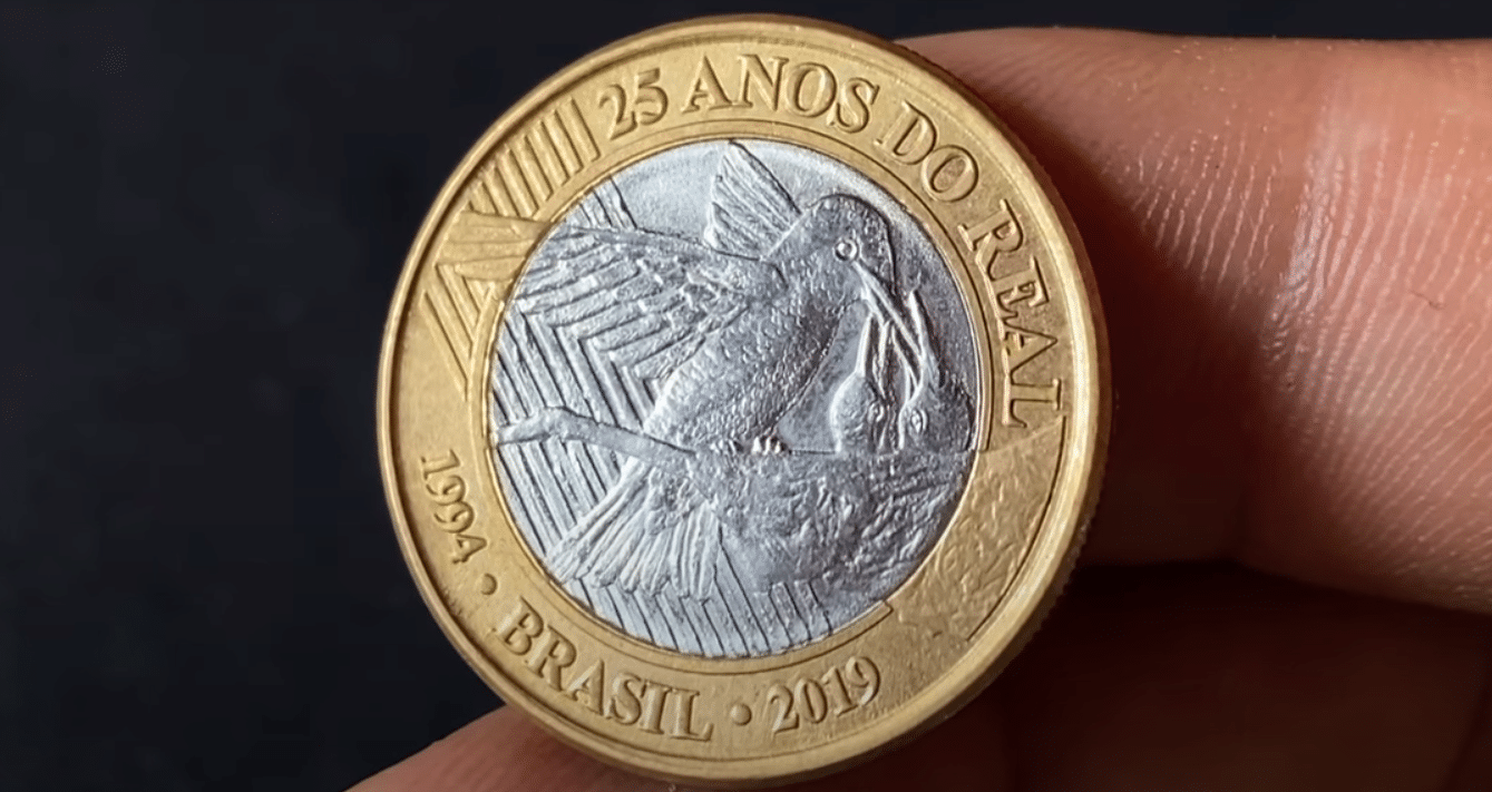Lançada em 2019, a moeda de R$1 com o Beija-Flor foi produzida para celebrar os 25 anos do plano Real. Foram produzidas 25 milhões de unidades, o que a torna comum. No entanto, moedas com defeitos de cunhagem nessa edição ganham valor especial.