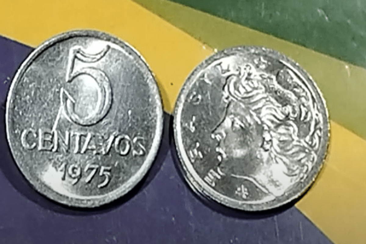 Qual o valor da moeda de 5 centavos do cruzeiro de 1975?