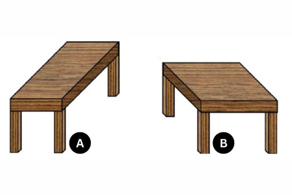 As duas mesas na imagem parecem completamente diferentes: a Mesa A, à esquerda, parece longa e estreita, enquanto a Mesa B, à direita, aparenta ser mais curta e larga. À primeira vista, muitos podem acreditar que a Mesa A é muito maior que a Mesa B. Mas será que essa percepção está correta? Neste desafio, descubra qual das duas mesas é maior?