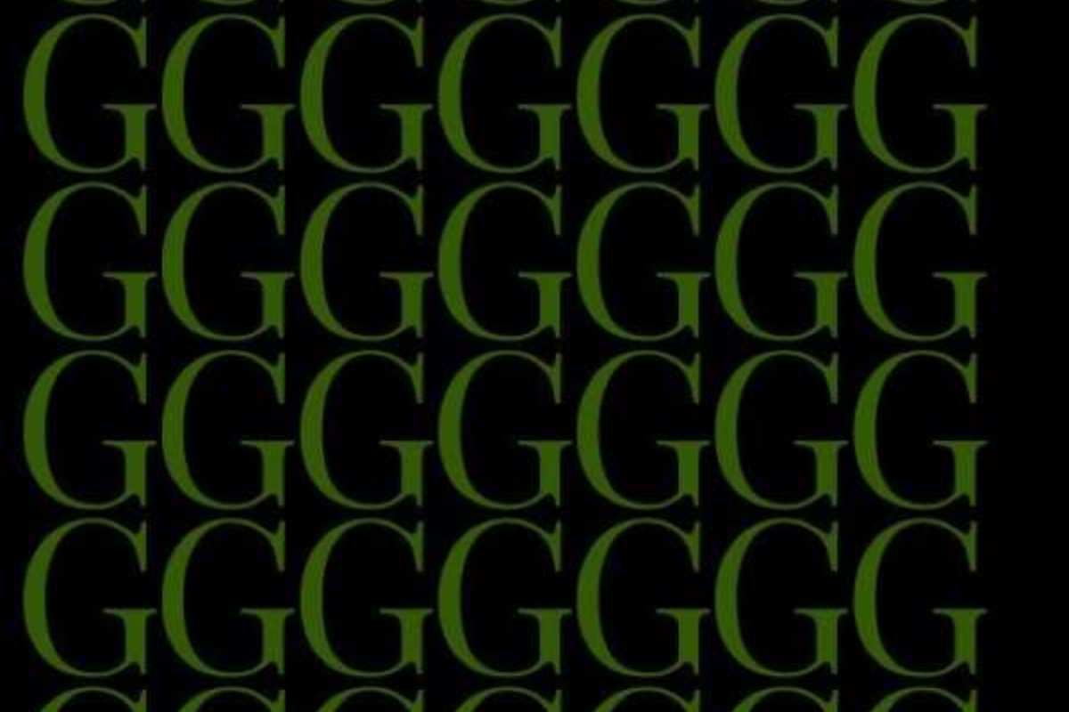 A imagem mostra uma matriz cheia de letras “G” dispostas em fileiras e colunas sobre um fundo preto. Cada letra “G” é idêntica, exceto por uma única letra “C” escondida entre elas. O desafio é encontrar essa letra “C” diferente entre todas as letras “G” no menor tempo possível.