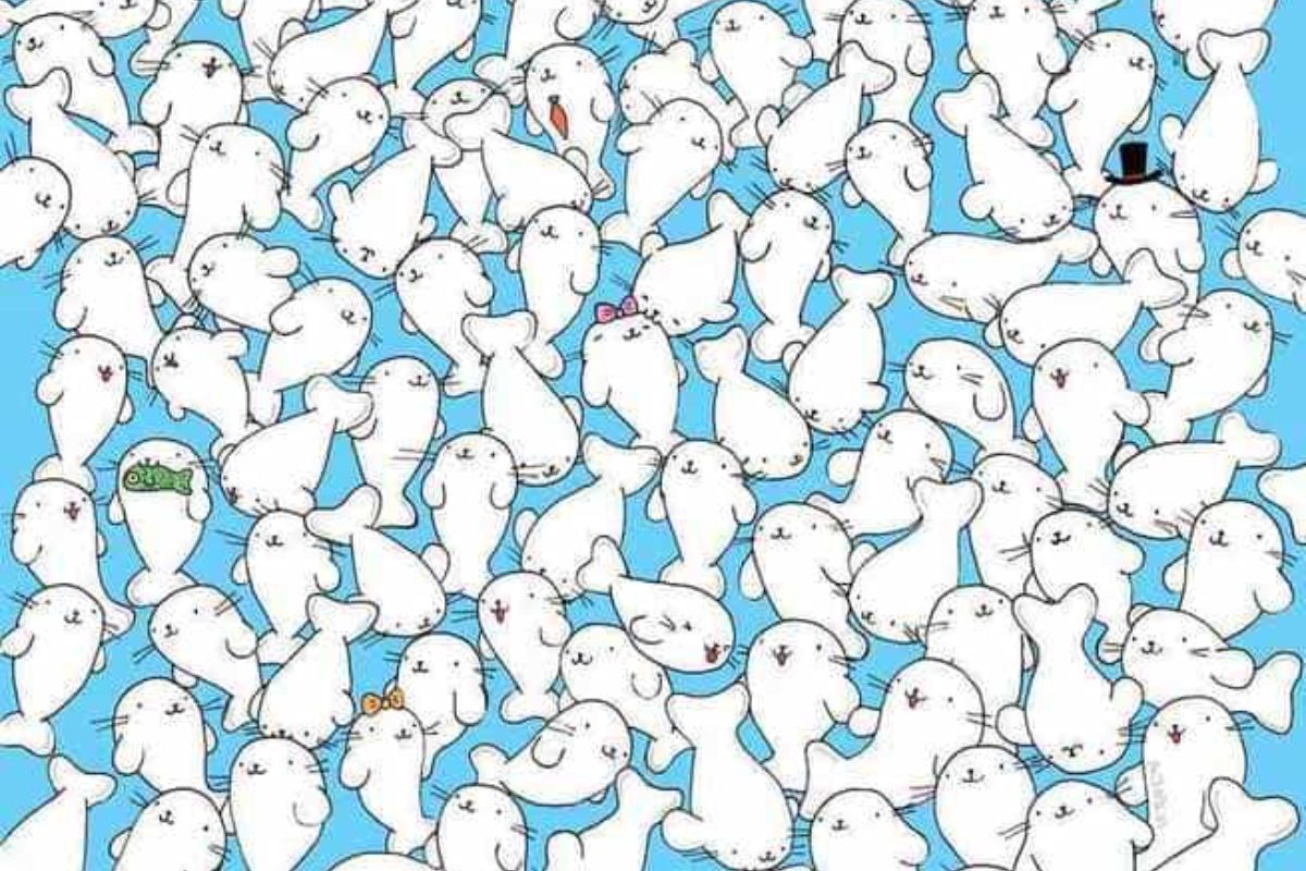 Vamos testar suas habilidades com um desafio especial. A imagem abaixo apresenta um grupo de focas se divertindo. No entanto, há um intruso entre elas: um marshmallow. Seu desafio é encontrar o marshmallow em apenas 15 segundos!