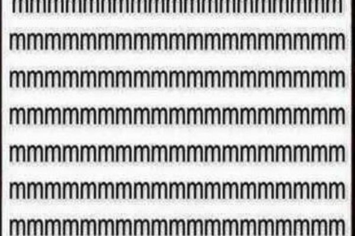 Na imagem abaixo, vemos várias linhas preenchidas com a letra ‘m’. Entre elas, está escondida uma única letra ‘n’. Seu desafio é encontrar essa letra diferente em apenas 15 segundos. Será que você consegue? Olhe atentamente e veja se seus olhos ágeis podem localizar o impostor. Boa sorte!
