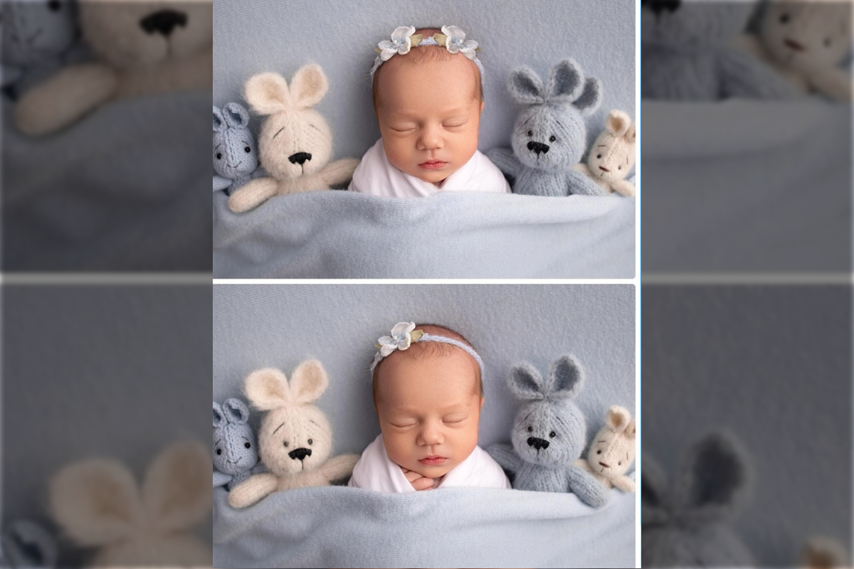 Realmente, as duas imagens aparentam ser completamente iguais, e poucas pessoas discordariam disso, não é mesmo? Afinal, o bebê dormindo ao lado dos seus bichinhos de pelúcia foi retratado repetidamente em todos os detalhes nas duas imagens. Apesar das aparências, o enunciado deixa bem claro que existem 4 erros presentes em uma das cenas em relação à outra.