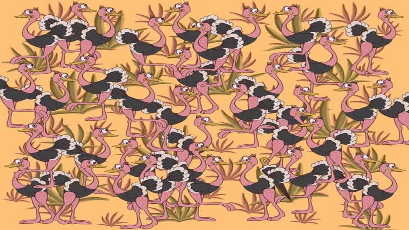 Teste sua atenção! Entre dezenas de avestruzes idênticos, há um guarda-chuva muito bem camuflado. Imagem: brightside