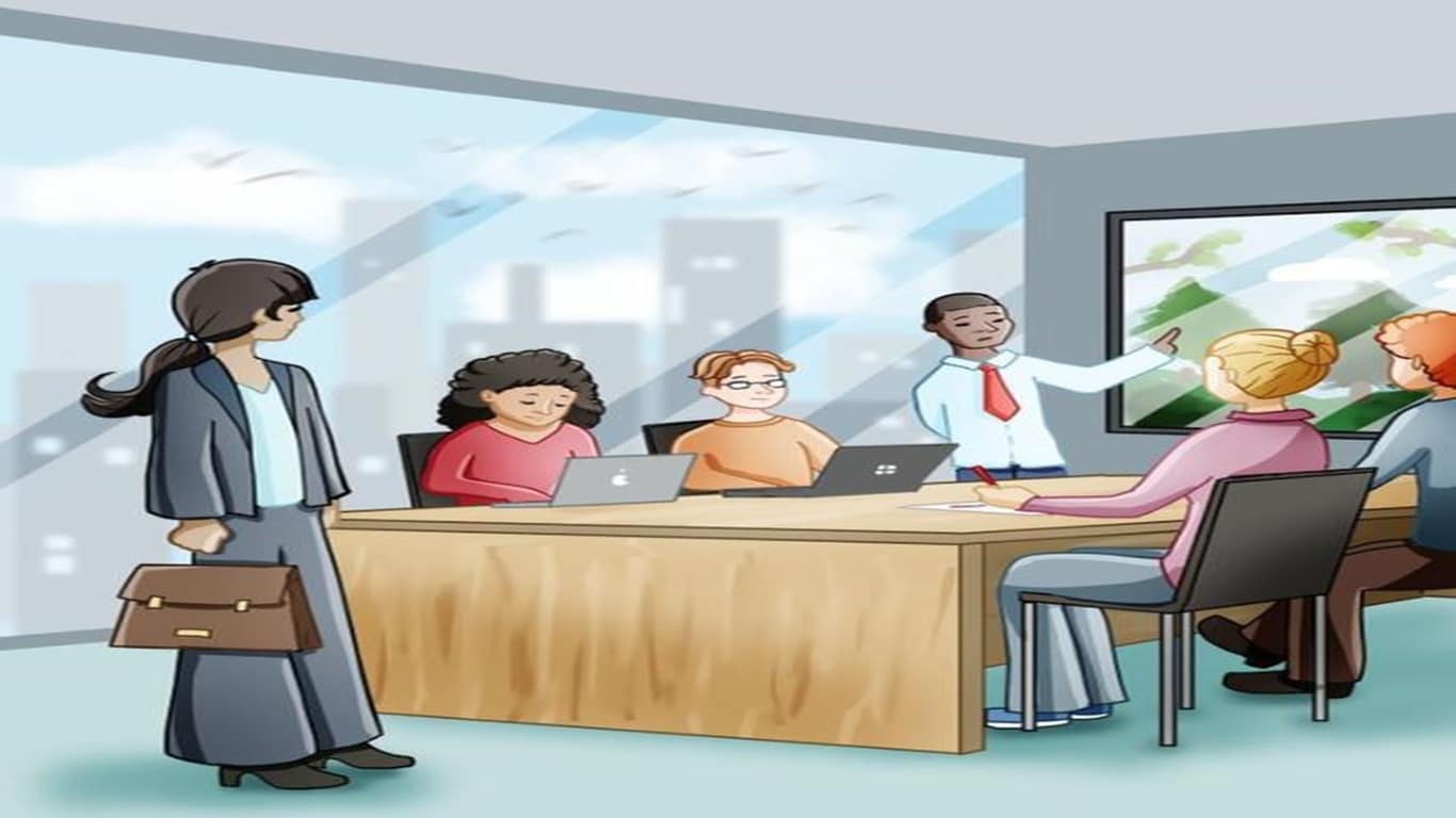 - Confira elementos do ambiente – A sala parece adequada para a reunião? Talvez exista um quadro branco sem anotações, uma janela com cortina fechada em pleno dia, ou um relógio parado, indicando um ambiente pouco funcional.