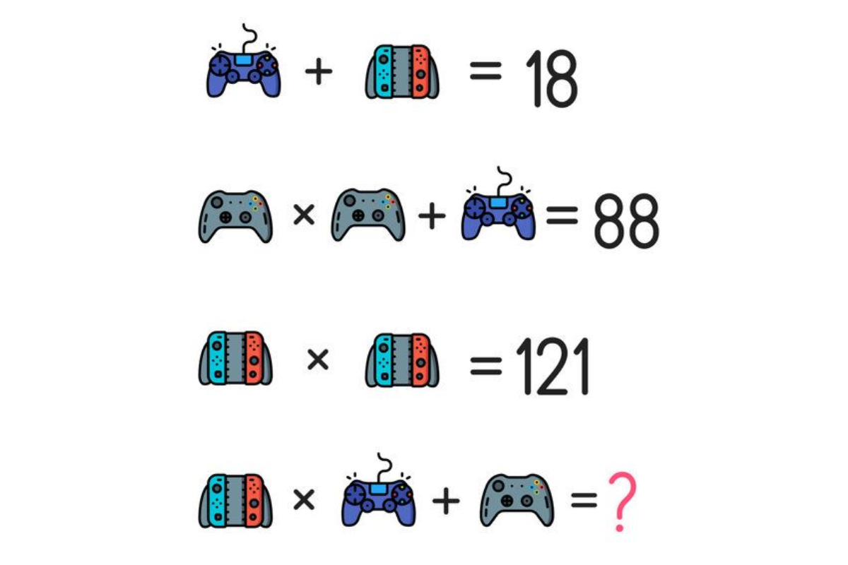 Na imagem abaixo, você verá um desafio matemático com símbolos de controles de videogame. Seu desafio é encontrar o valor correto para cada controlador em apenas 9 segundos.