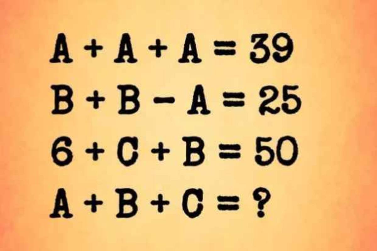 Observe a imagem abaixo, onde três equações são apresentadas. Seu objetivo é encontrar o valor final da soma de A + B + C.