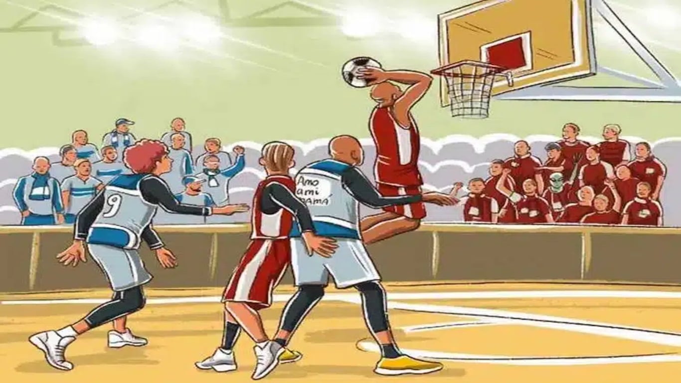 Encontre 3 erros na partida de basquete. Imagem: Pinterest