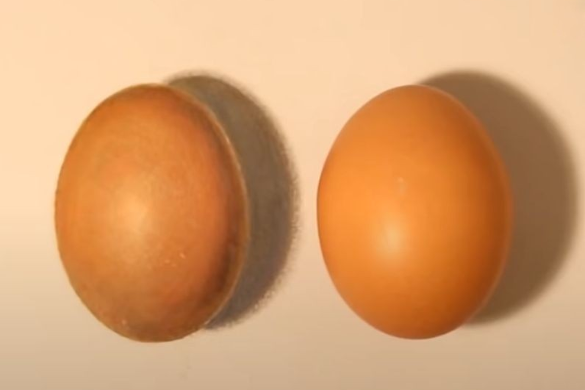 Na imagem, vemos dois ovos lado a lado sobre um fundo claro. À primeira vista, ambos parecem iguais, mas há uma diferença importante: apenas um dos ovos é verdadeiro. O desafio é observar cuidadosamente e identificar qual deles é o real.