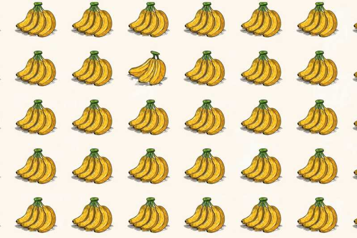 Os quebra-cabeças visuais são excelentes formas de testar habilidades de observação, atenção e raciocínio lógico e neste desafio visual, você deve encontrar um cacho de bananas diferente entre vários outros aparentemente iguais. Será que você consegue resolver em apenas 3 segundos?