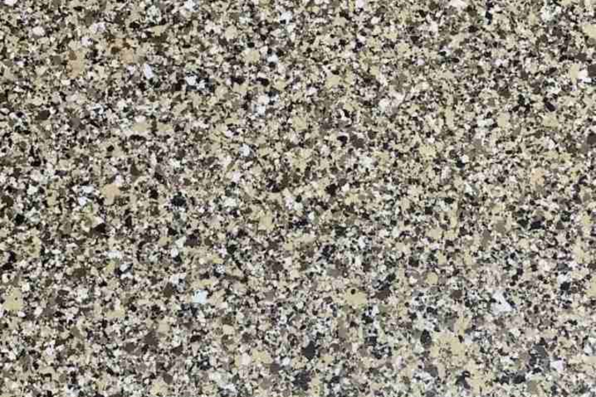 A imagem acima é composta por um padrão de fundo repleto de pequenas manchas e formas irregulares em tons variados, criando uma textura uniforme e desafiadora para os olhos. Entre essas figuras, está escondido um dado que se camufla perfeitamente no cenário.