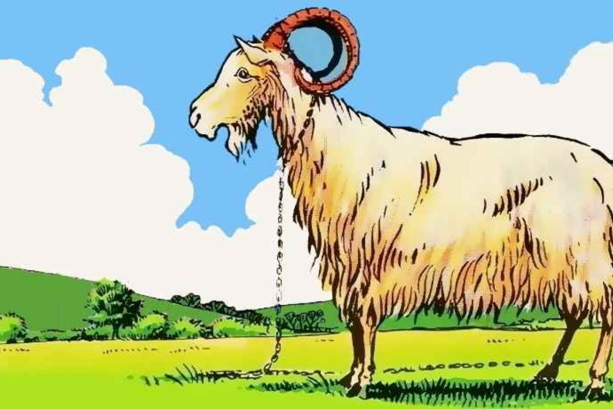 A resposta para o desafio é que a imagem mostra uma cabra com chifres de carneiro, o que é incorreto. Cabras e carneiros têm diferenças distintas em seus chifres: enquanto carneiros possuem chifres curvados para trás, as cabras geralmente têm chifres mais retos e menos volumosos. Essa discrepância é o erro na imagem.