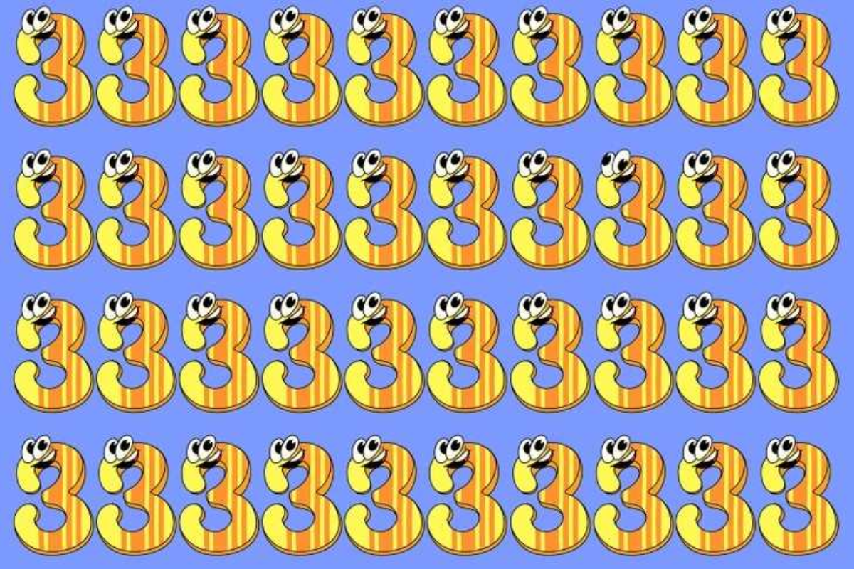 Consegue encontrar os três números “3” que são diferentes? Olhe com atenção e veja se consegue identificá-los em menos de 9 segundos!