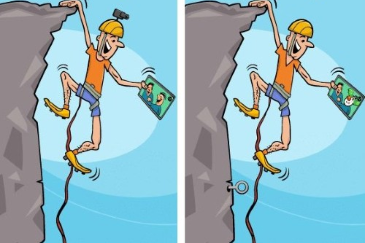 Preste atenção nos elementos como a corda, o alpinista, o pássaro e o fundo. Cada detalhe pode revelar uma diferença! Agora, aceite o desafio e teste suas habilidades de observação!