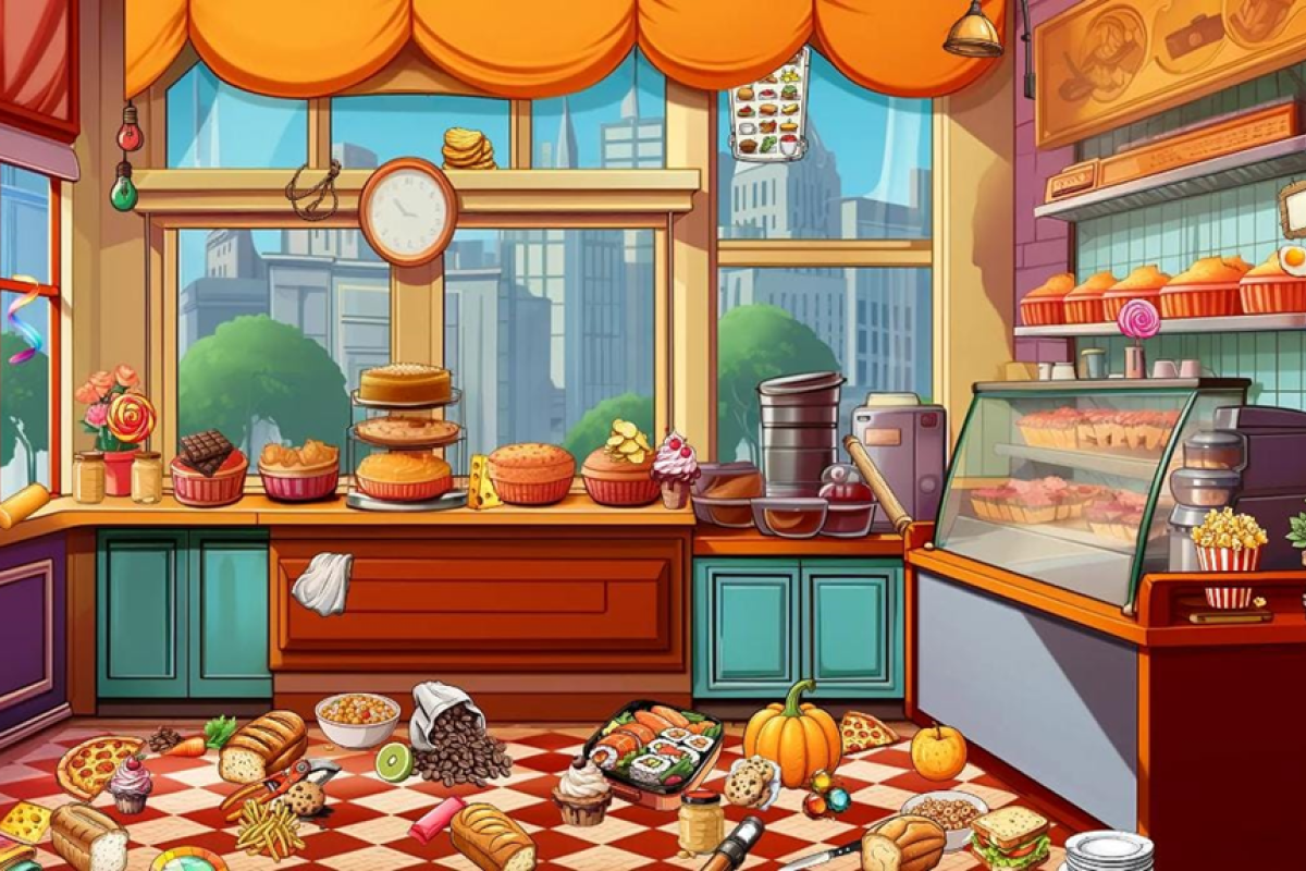 Logo abaixo, você verá uma confeitaria bem desorganizada, e sua tarefa será encontrar uma barra de chocolate no meio de tamanha baderna. Sendo assim, prove que você é concentrado e que consegue encontrar esse alimento rapidamente. Para isso, você precisa ignorar distrações e focar apenas no que precisa para concluir essa tarefa dentro do tempo estimado de apenas 10 segundos.