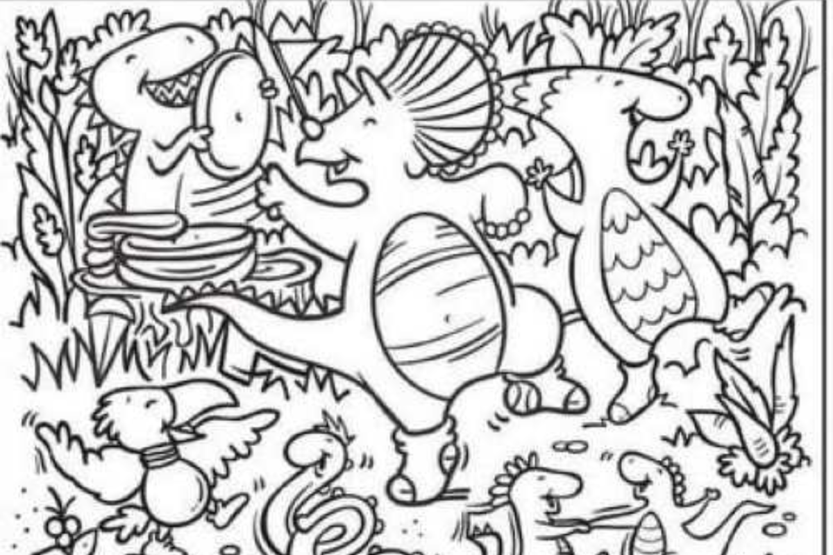 Desafio: Escondida entre os dinossauros e o ambiente está uma lâmpada. Você consegue encontrá-la? Observe atentamente todos os cantos e detalhes da imagem para localizar o objeto oculto. Boa sorte!
