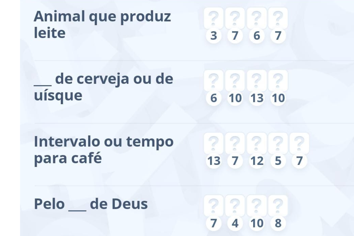 As palavras cruzadas não são difíceis de resolver quando se sabe a resposta para as perguntas apresentadas. No entanto, o que dificulta sua vida nesse desafio é o tempo que oferecemos para a conclusão. Afinal, você tem apenas 10 segundos para encontrar e completar todas as frases. Sendo assim, não se preocupe se você não estiver conseguindo resolver esse enigma, porque vamos ajudar logo abaixo.