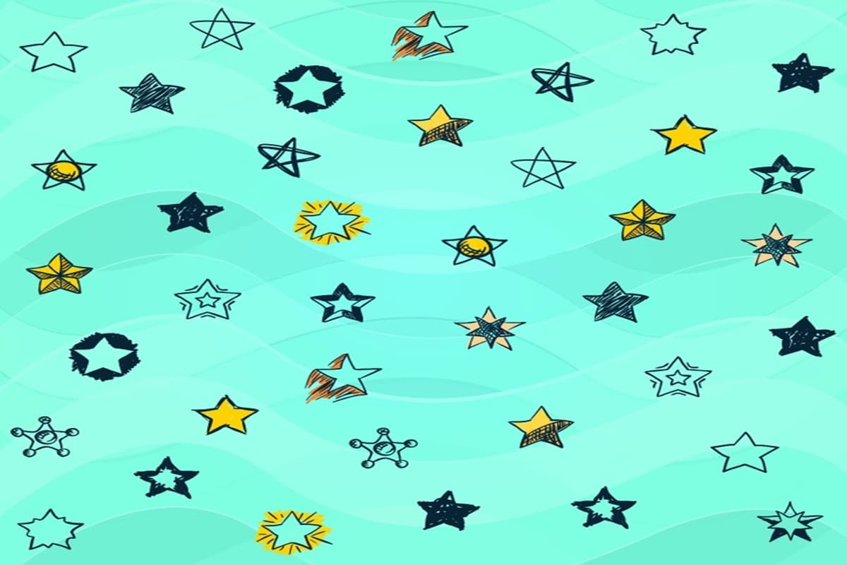 O desafio de hoje é simples, mas exige concentração: identificar qual estrela não tem par entre várias estrelas misturadas em um fundo azul com linhas onduladas.