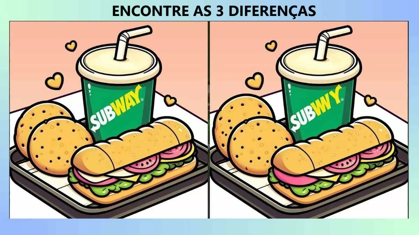 No desafio de hoje, você encontrará uma deliciosa imagem de lanche que esconde três diferenças sutis. A imagem apresenta um sanduíche Subway, um copo de refrigerante refrescante e dois biscoitos apetitosos. Seu objetivo é detectar as três variações entre as duas imagens aparentemente idênticas. Este tipo de desafio testa sua percepção visual e atenção aos detalhes, fornecendo uma experiência divertida e envolvente. Prepare-se para observar minuciosamente e encontrar as diferenças ocultas enquanto aprecia essa cena de lanche tentadora. Está pronto para encarar o desafio? Boa sorte!