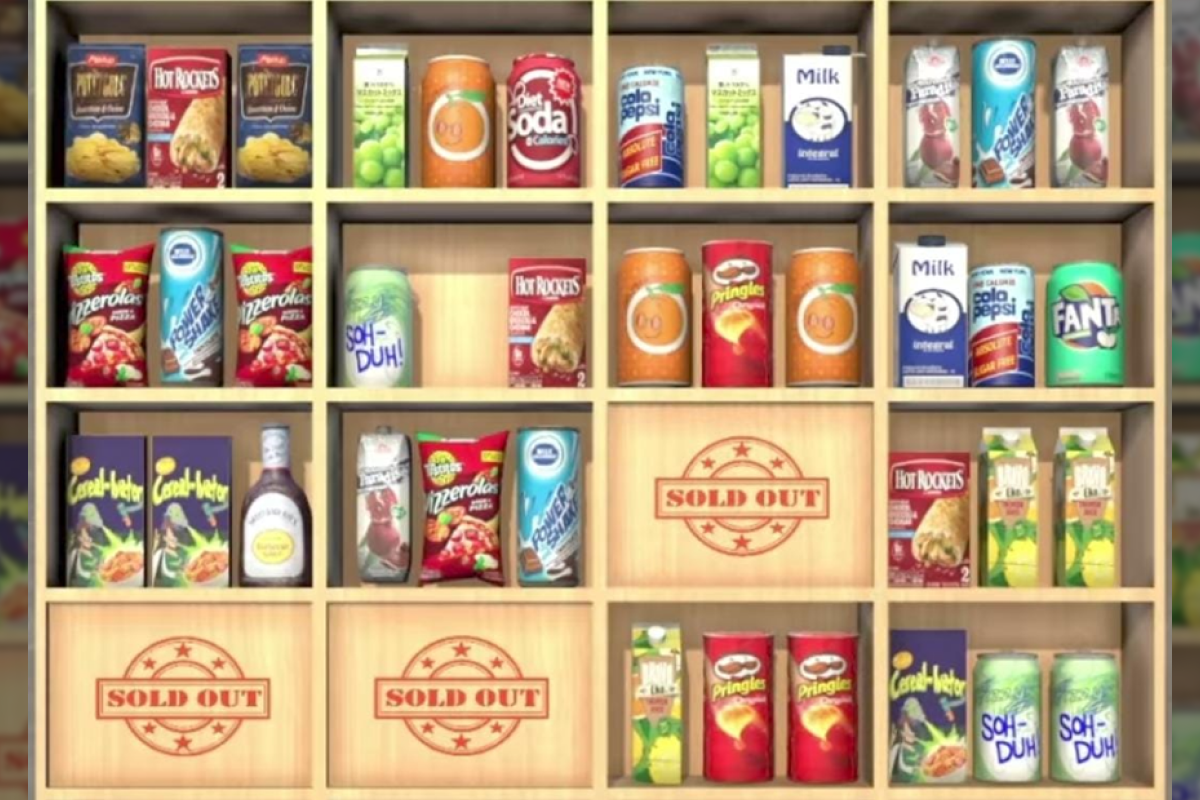 Logo abaixo, você verá algumas prateleiras de supermercado com diversos produtos expostos. Nesse sentido, você notará que todos os produtos têm versões repetidas nas outras divisórias. Mas, dois produtos são exclusivos e aparecem apenas uma vez na figura que retratamos logo abaixo. Sua tarefa é encontrar esses dois em menos de 10 segundos para obter sucesso nesse desafio visual. Confira: