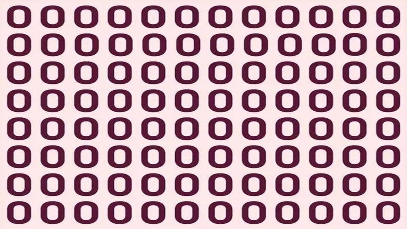 Desafio visual com sequência de letras O em padrão repetido com um número 0 escondido entre elas