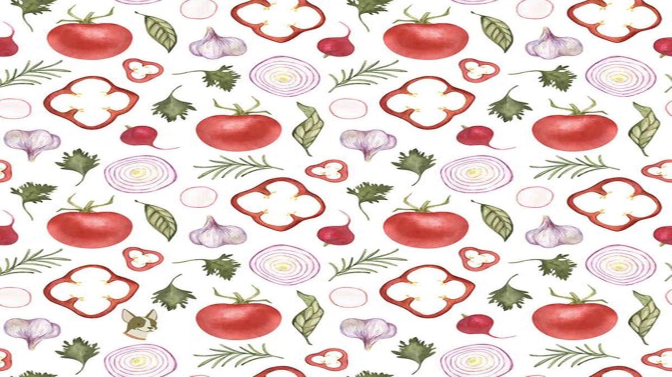 Descubra o cãozinho escondido neste padrão de legumes e temperos em aquarela. Imagem: coolguru