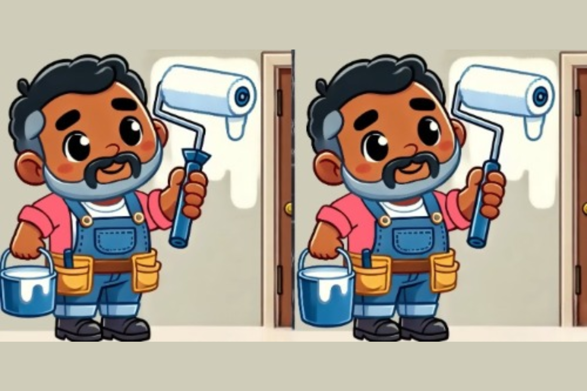 - Comece pelos objetos principais: Analise detalhadamente o rolo de pintura, o balde de tinta e o macacão. Itens que o trabalhador está segurando ou vestindo podem conter diferenças.