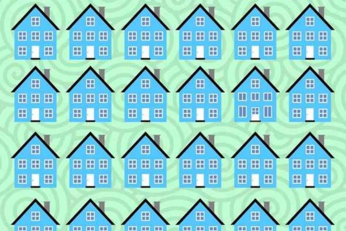 Examine a imagem com cuidado e tente identificar a casa que apresenta uma característica única em relação às outras. Você consegue encontrá-la em menos de 7 segundos? Coloque sua habilidade de observação à prova e veja se consegue superar esse desafio visual!