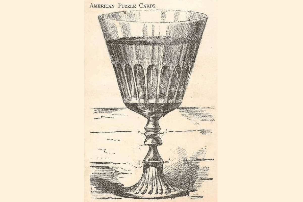 Mude o foco da sua visão – Em vez de olhar para a taça no centro, tente focar nas laterais da imagem. Os rostos estão formados pelo contorno do cálice.