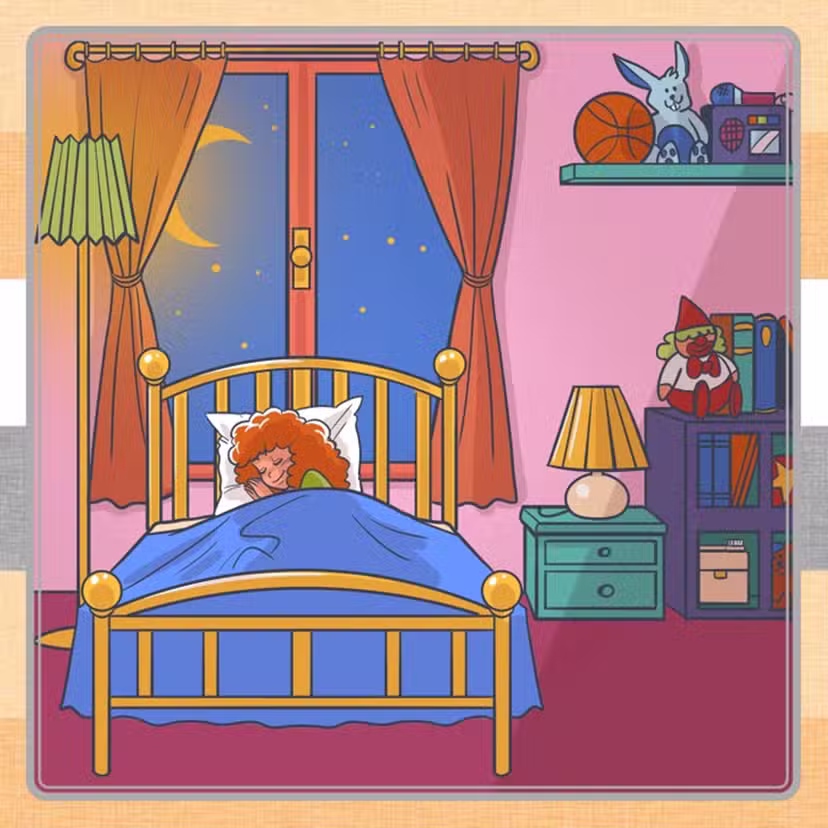 Prepare-se para o desafio de hoje, que vai testar sua percepção! Observe com bastante atenção a imagem com uma criança dormindo em um quarto colorido com brinquedos e objetos ao redor. Existe uma escova de dentes camuflada, bem escondida para você identificar nesta imagem. Você consegue achar em até 15 segundos?
