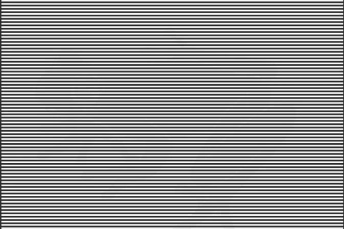 A imagem apresenta um padrão de linhas horizontais finas em preto e branco, criando um efeito visual intrigante. À primeira vista, pode parecer apenas uma composição abstrata, mas há algo escondido: um animal camuflado dentro das linhas. Este desafio visual exige concentração e atenção aos detalhes para localizar o animal que está sutilmente inserido na ilusão.