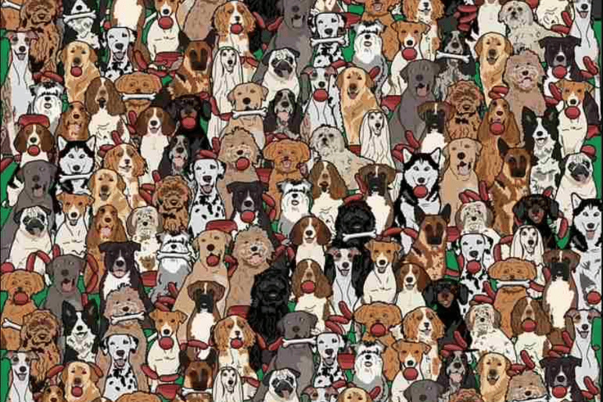 Neste desafio visual, sua missão é encontrar um cachorro com salsicha na boca entre diversos cães desenhados em uma única imagem.  Mas a missão não é tão simples assim, você deve realizá-la em 15 segundos.