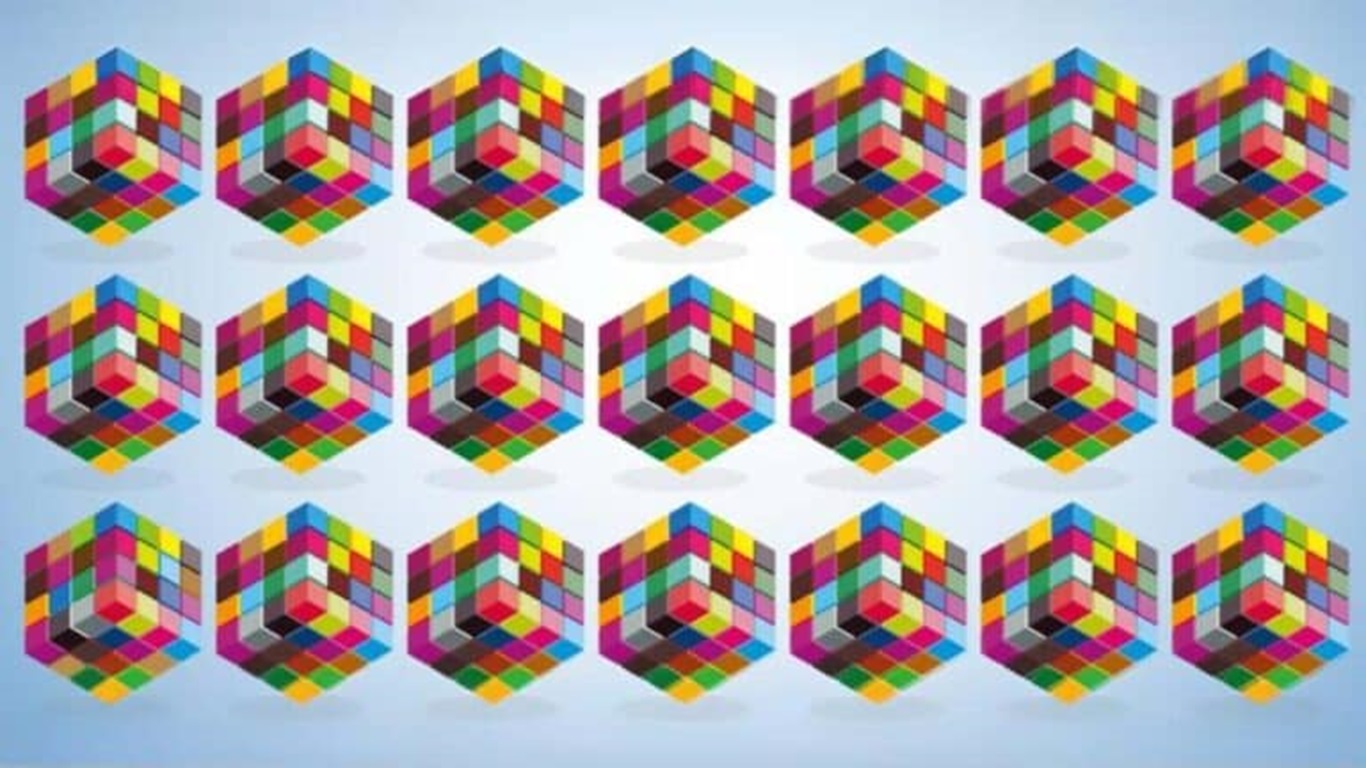Examine os Detalhes: Analise os detalhes de cada cubo, como padrões, linhas ou texturas. Pequenas diferenças podem indicar o cubo único.