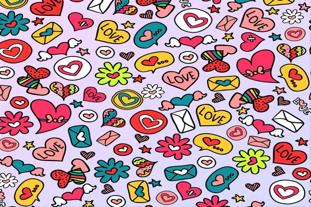 A imagem apresenta um padrão colorido com ícones desenhados à mão de corações, envelopes com cartas de amor, flores e estrelas A sua tarefa é simples: encontrar, em até 20 segundos, o doce escondido. Esse tipo de teste de atenção e concentração é perfeito para quem gosta de desafios rápidos e interessantes, além de ser uma ótima forma de treinar o cérebro diariamente.