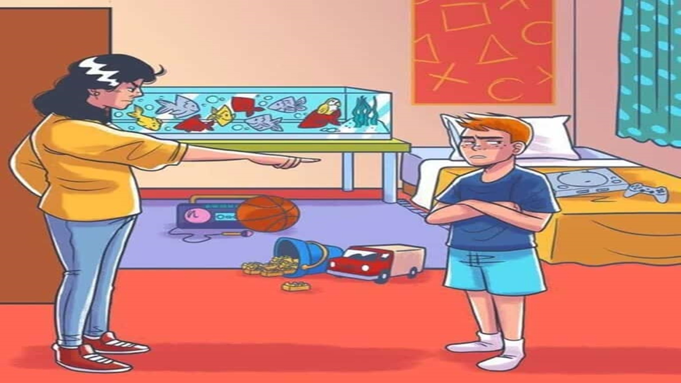 Essa atividade não só exercita a capacidade de observação, mas também coloca à prova a rapidez de pensamento e reação dos participantes. O cenário do quarto desorganizado com o aquário, a cama, o adolescente irritado e sua mãe oferecendo um contexto comum torna o desafio mais envolvente. Encontrar o erro em até 10 segundos exige que a pessoa preste atenção aos detalhes e mantenha o foco apesar da pressão do tempo. Além de ser uma ótima forma de entretenimento, essa prática contribui para o desenvolvimento da atenção aos detalhes e da habilidade de resolução de problemas de maneira eficiente e divertida.
