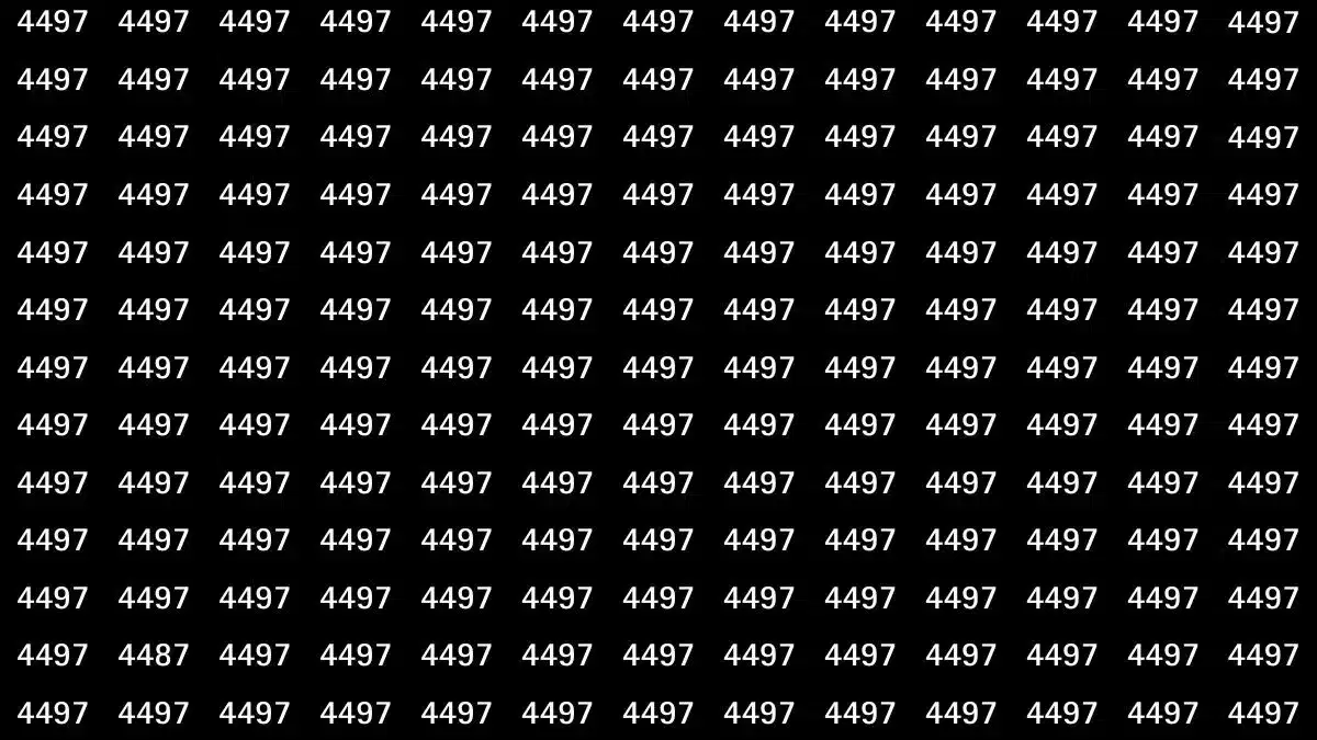 Agora, que tal testar sua visão com um desafio rápido? Imagine uma imagem cheia do número 4497, mas escondido nela está o número 4487. Seu desafio é encontrá-lo em apenas 20 segundos. Parece fácil à primeira vista, mas a repetição e organização dos números podem confundir seus olhos, fazendo com que você veja todos iguais!