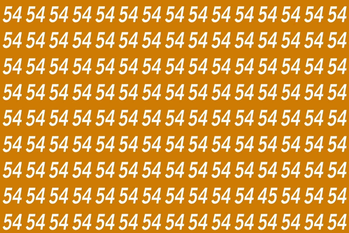O teste consiste em uma grade repleta do número ’54’ repetido várias vezes. Em algum lugar dessa confusão numérica, está escondido um único ’45’. Seu cérebro precisará processar rapidamente as informações visuais e identificar a inversão dos dígitos.