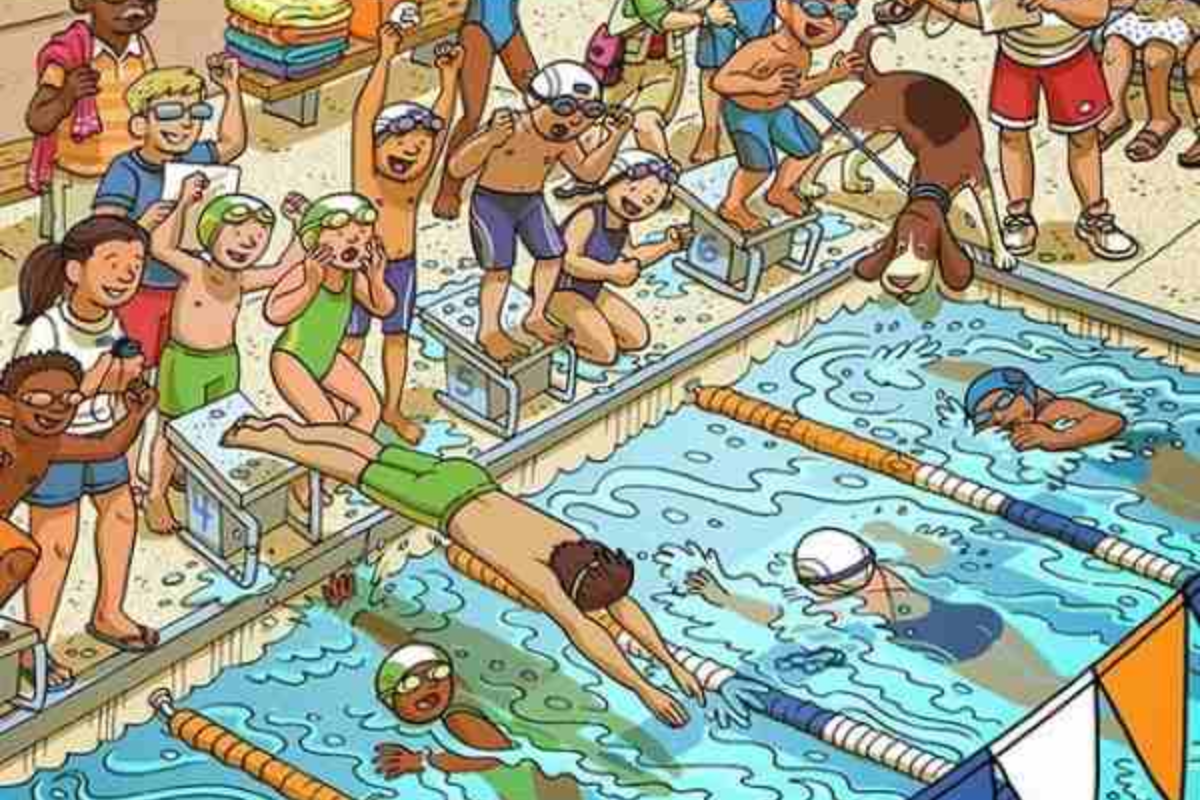 - Preste atenção aos detalhes na água: Eles podem estar flutuando ou próximos às linhas que separam as raias da piscina.
