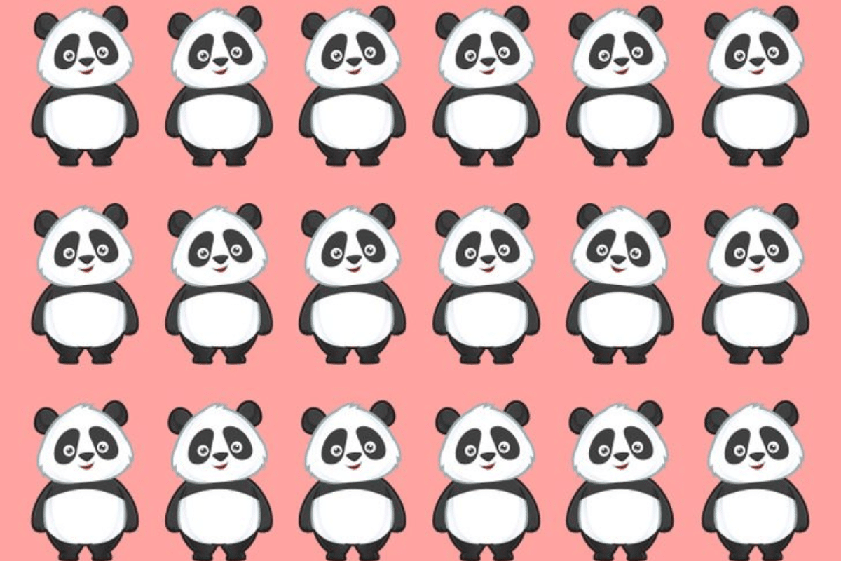 Mas cuidado: um dos pandas é diferente dos demais. Você consegue encontrar o panda diferente nesta imagem em até 9 segundos?