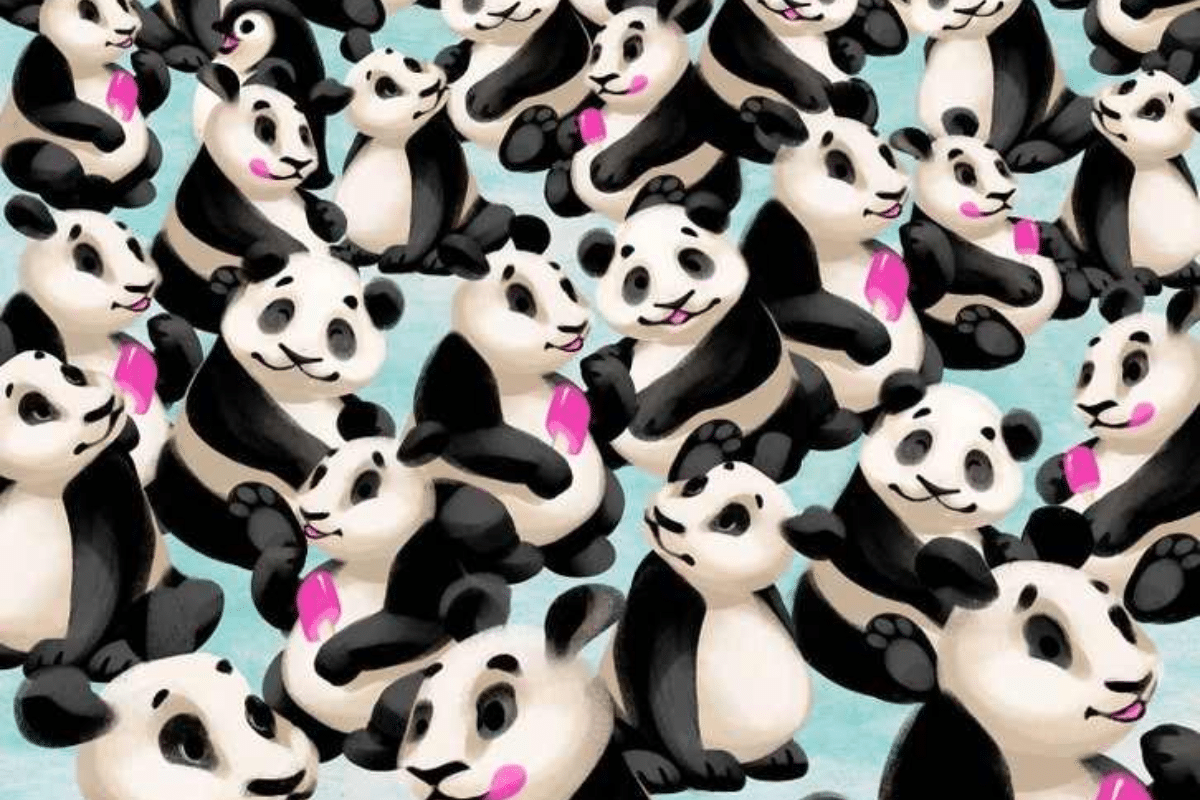 Você consegue encontrá-lo em menos de 7 segundos? Para isso, observe com atenção e tente identificar algo que fuja do padrão. O pinguim tem um formato corporal diferente e pode estar disfarçado entre os pandas.