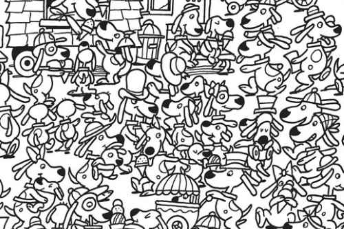 • Fique de olho em padrões repetitivos: O polvo pode estar escondido em meio a padrões repetitivos, como as patas ou rostos dos cães, de forma que seus tentáculos se misturem visualmente com esses detalhes.