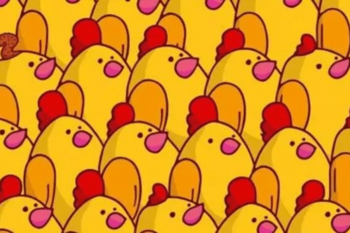 Observe com calma cada linha e tente identificar algo que não se encaixa com o padrão das galinhas. Um elemento com cor e textura diferentes pode ser a pista certa. Será que você tem o olhar treinado para encontrar o detalhe escondido? Teste agora sua capacidade de observação.